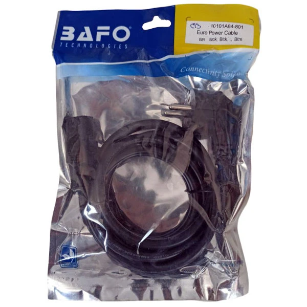 کابل برق سه پین بافو مدل BAFO AWG 3×1mm با طراحی استاندارد، هادی مسی خالص و روکش مقاوم، یکی از بهترین گزینهها برای اتصال آداپتور لپتاپها و پاور کامپیوترها به برق شهری محسوب میشود.