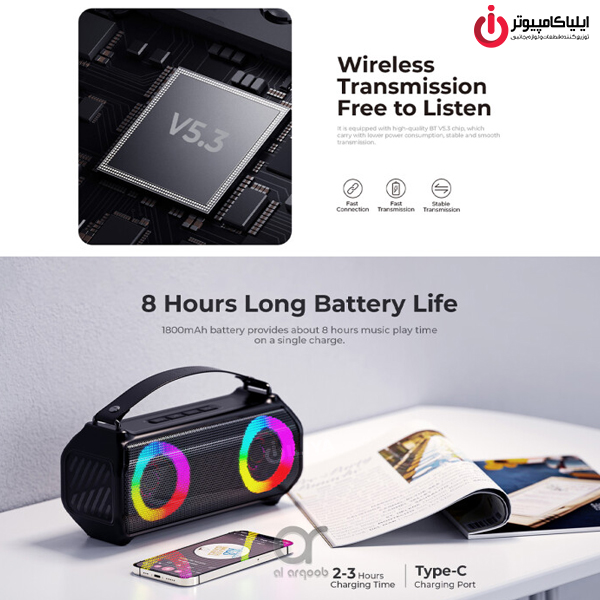 - 🔹 Bluetooth 5.3: اتصال پایدار، سریع و کممصرف