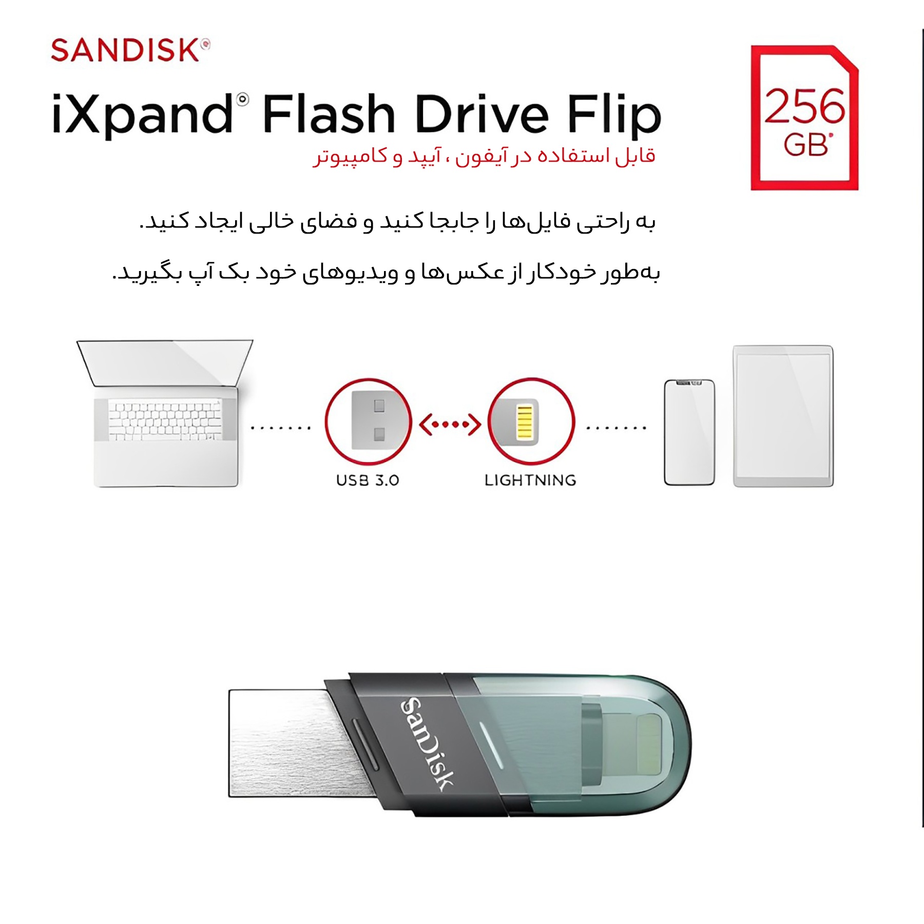 فلش مموری سن دیسک مدل IXPAND FLIP ظرفیت ۲۵۶ گیگابایت